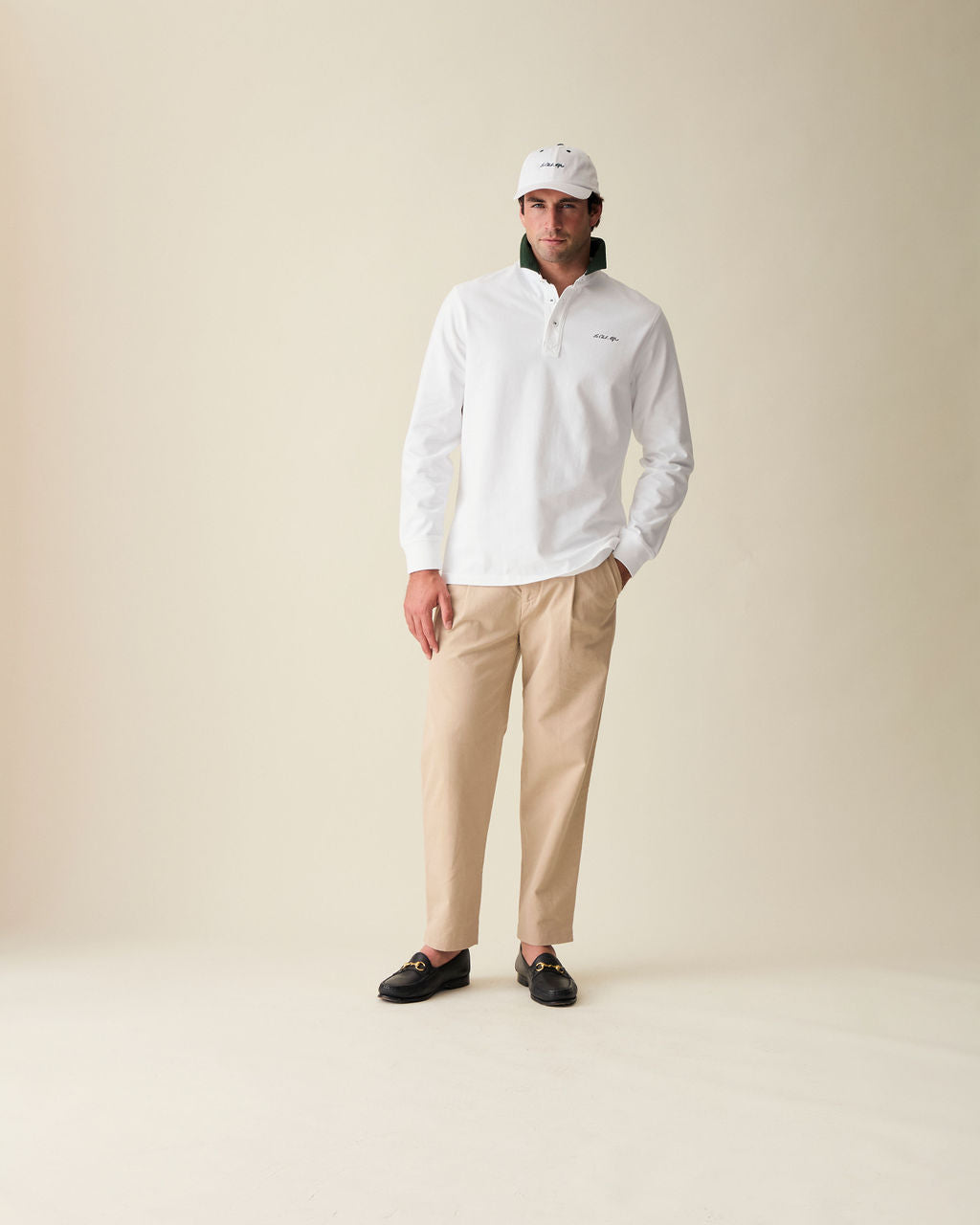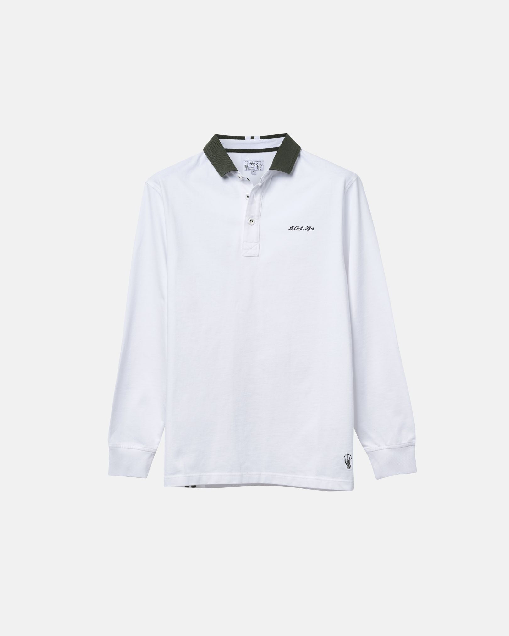 Made in Portugal, this rugby shirt is designed with custom embroideries and neck label in a very special club member only white & hunter green colorway. Nothing is cooler than showing off that you're in Le Club Alfré. This rugby shirt is made with ultra-fine & ultra-soft Portuguese cotton 280gm for perfect all year round wear.