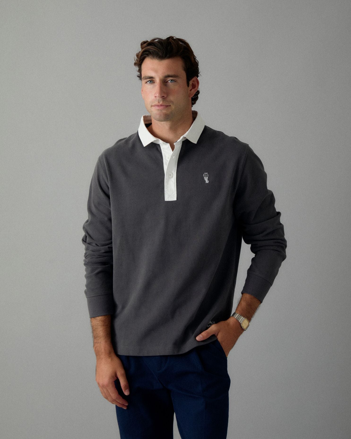 A classique rugby for a classique man. This rugby shirt is made with ultra-fine & ultra-soft Portuguese cotton 280gm for perfect all year round wear. Featuring a dark grey colorway, Le Rugby Classique is the perfect combo of elegance & sport.