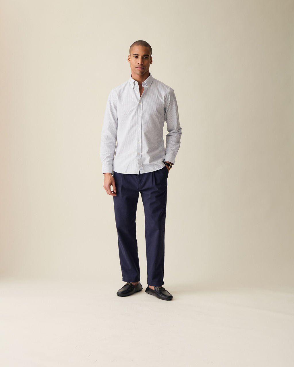 Stripes are always in season. Our favorite Oxford Shirt designed with elegant stripes for a refined look that's comfortable, casual, and sophisticated. Handcrafted using the highest quality Oxford shirting fabric from the oldest fabric mill in Portugal.